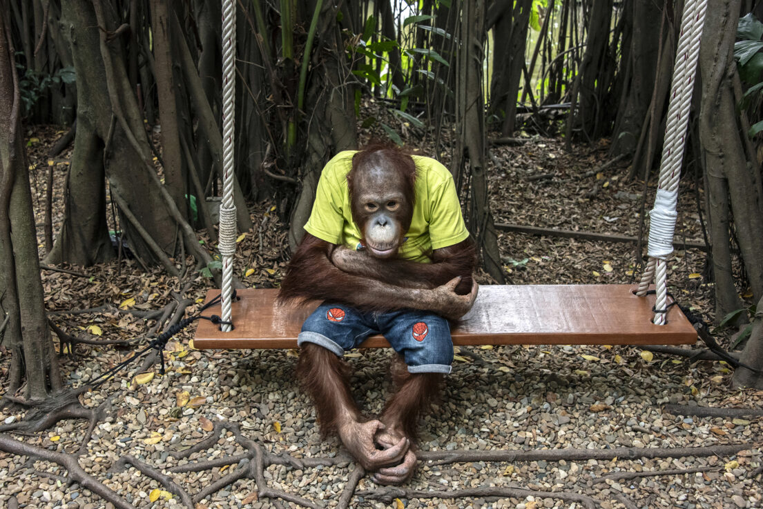 Wildlife tourism is often marketed as harmless fun or cultural experience. Photographed in various tourist locations across Thailand, this series documents the exploitation of primates under the guise of human entertainment.